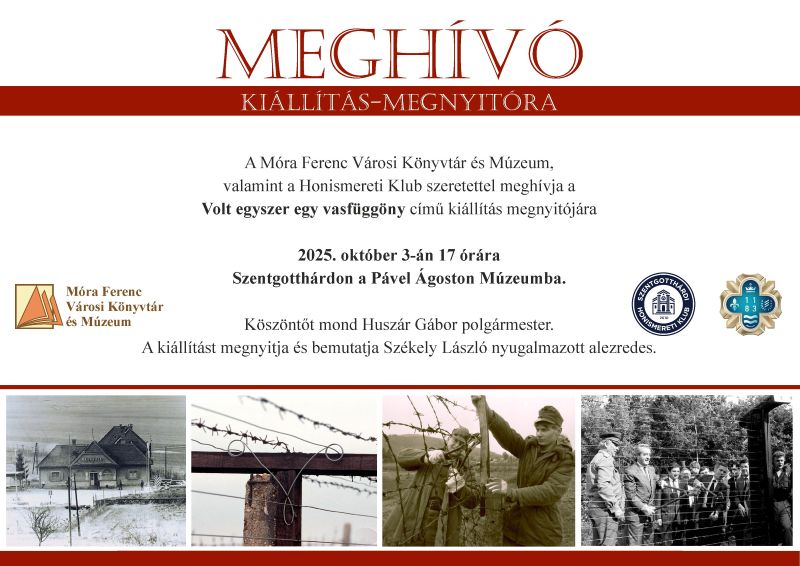 Szeretettel várjuk az érdeklődőket 2025. október 3-án 17 órára a Pável Ágoston Múzeumba a "Volt egyszer egy vasfüggöny" című kiállítás megnyitójára.