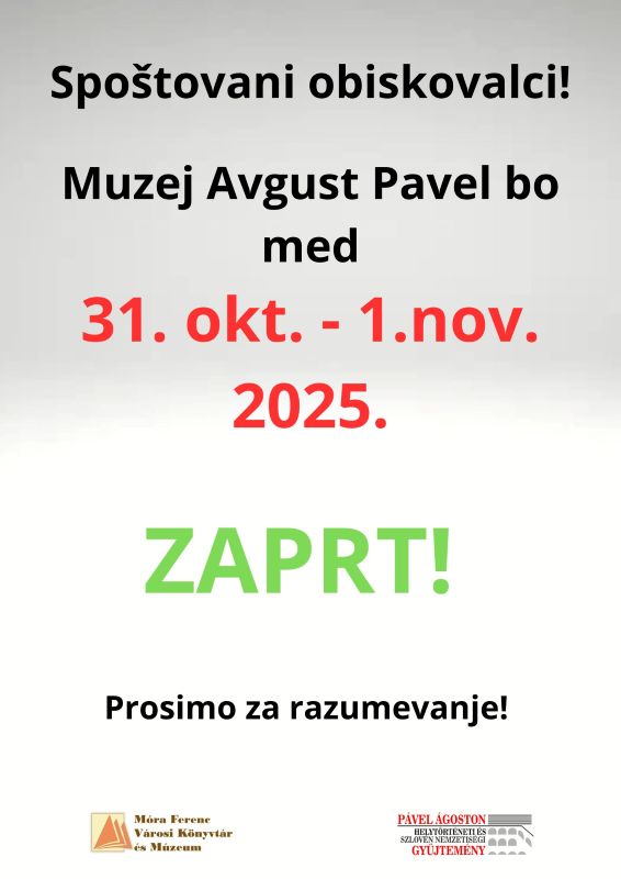 Muzej Avgust Pavel bo med 23-26. oktobrem 2025. zaprt!